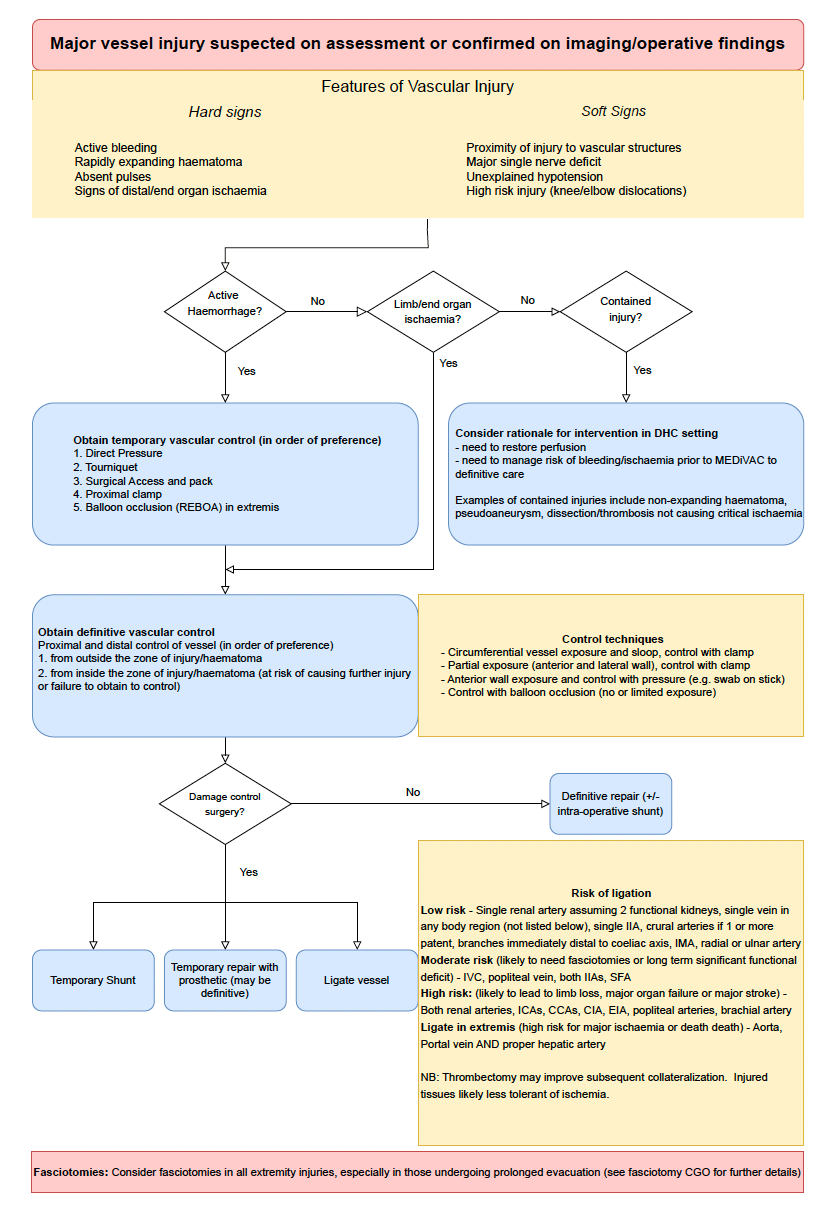 To provide guidance for surgical decision making and operative management of major vascular injury in the context of deployed hospital healthcare.